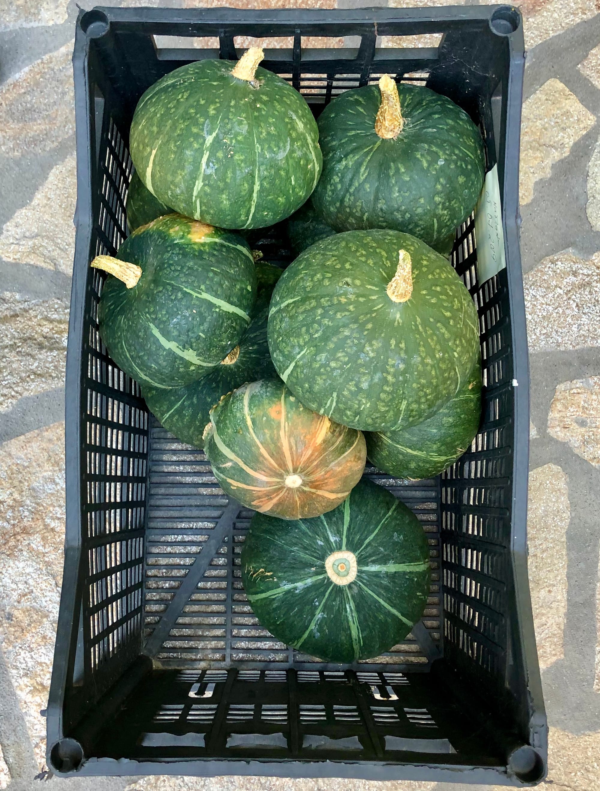 Our weekly Thursday treat is the freshly harvested vegetables delivered from a local farmer. Recently, root vegetables have been the main focus, but today, to my delight, a Japanese pumpkin (Kabocha) arrived.