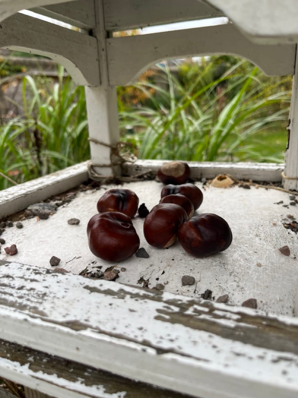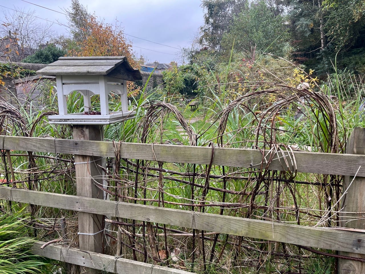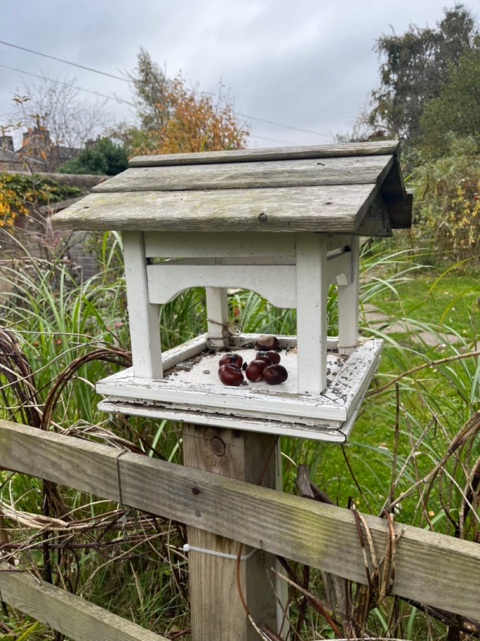 エディンバラ王立植物園にある可愛らしいリスの為の木の実置き場。A charming little nut stand for squirrels at the Royal Botanic Garden Edinburgh.