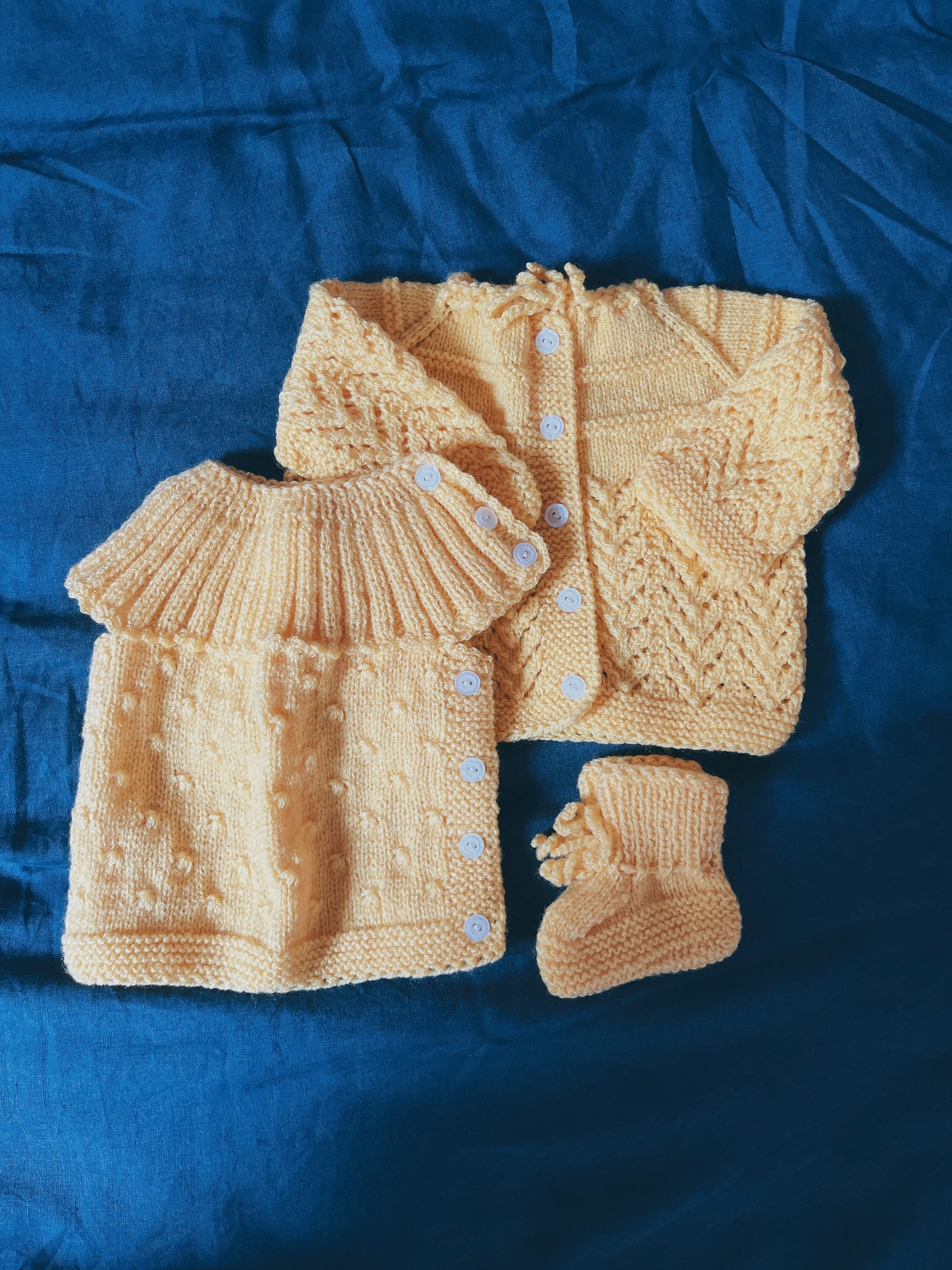 生前編み物が得意だった夫のおばあちゃんが、私と夫の間にいつか産まれてくる赤ちゃんの為にコツコツと編んでいた物だそうです。