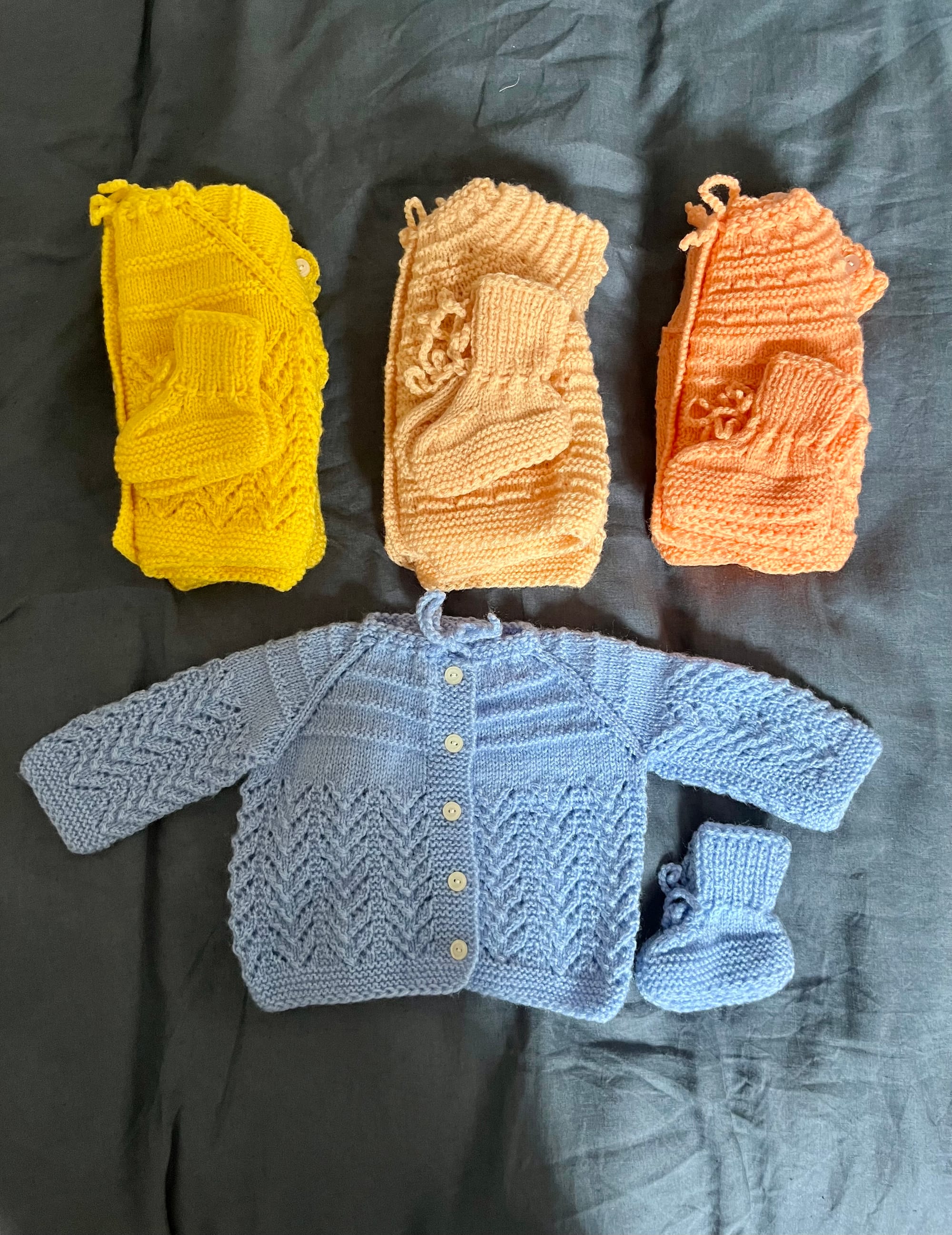 They were knitted by my husband's grandmother during her lifetime for the baby that would one day be born between my husband and me.