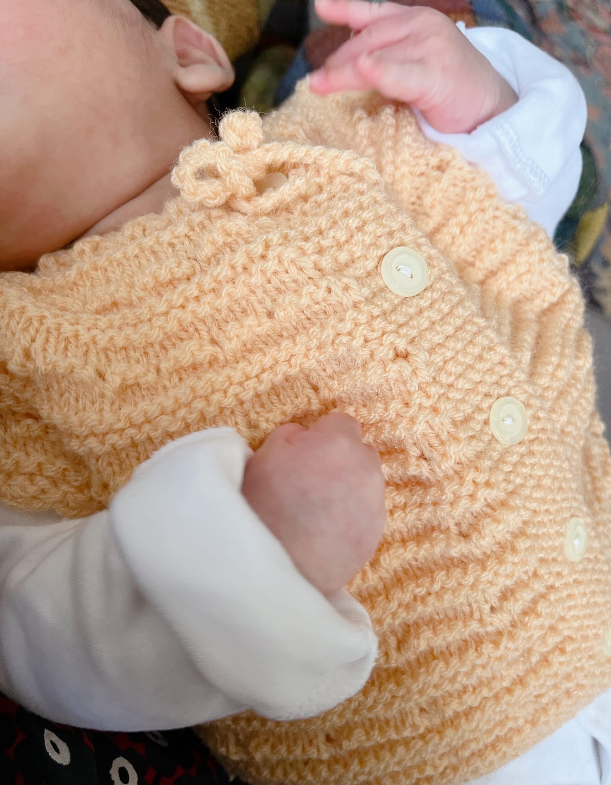 10月に無事に産まれた女の子。これから寒いエディンバラの冬を過ごすのにちょうど良いね。おばあちゃんの温もりを感じる編み物は、とても暖かい贈り物。