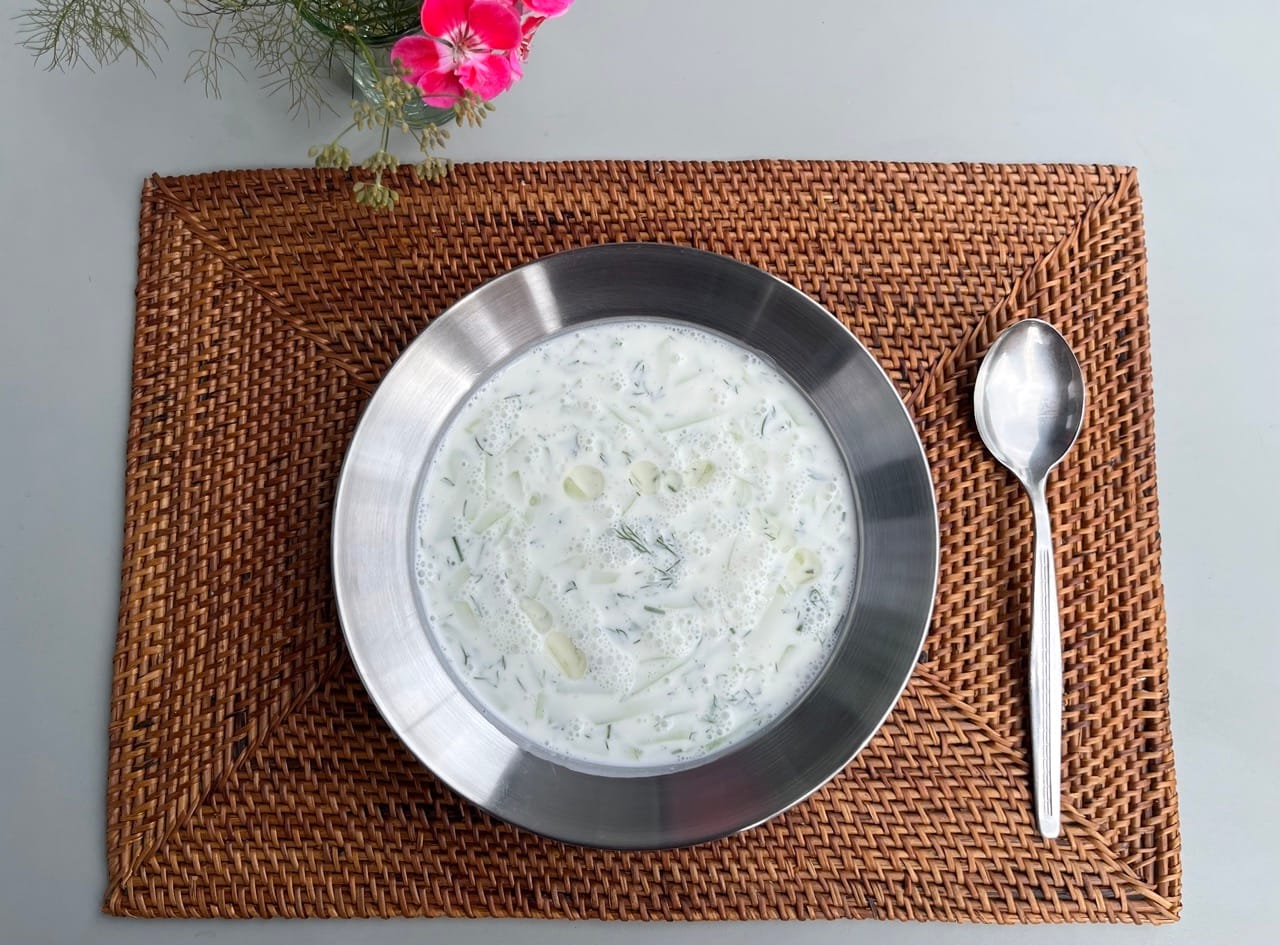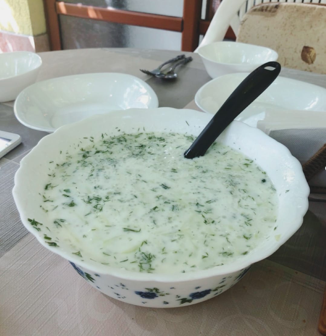 The recipe is simple: mix yoghurt and cold water in equal parts, add chopped cucumber, garlic, and dill, and season with salt. Serve it chilled, topped with a drizzle of olive oil and a sprinkle of chopped walnuts. On a hot day, it’s wonderfully refreshing—the garlic sharpens the appetite and the cool yoghurt seems to revive the body. In Bulgaria, people even drink it as a way to stay hydrated in summer. Since many families grow their own vegetables and herbs, it’s often made entirely with ingredients from the garden.
